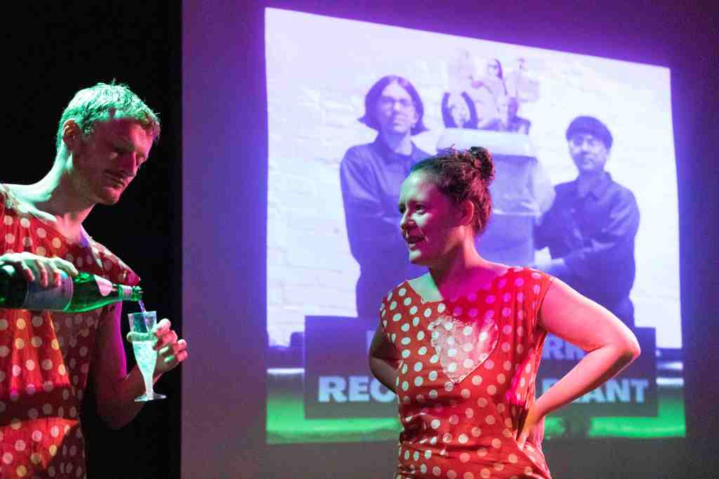 We join a group of art students to take over of a former JobCenterPlus. We make Office Simulation Space – our first piece with just the two of us – in which we busy ourselves in a small room only visible through a window with Venetian blinds. We ask all the other performers in the evening to occasionally to take a break, and join us in gathering around a full kettle of water and silently watching it boil.