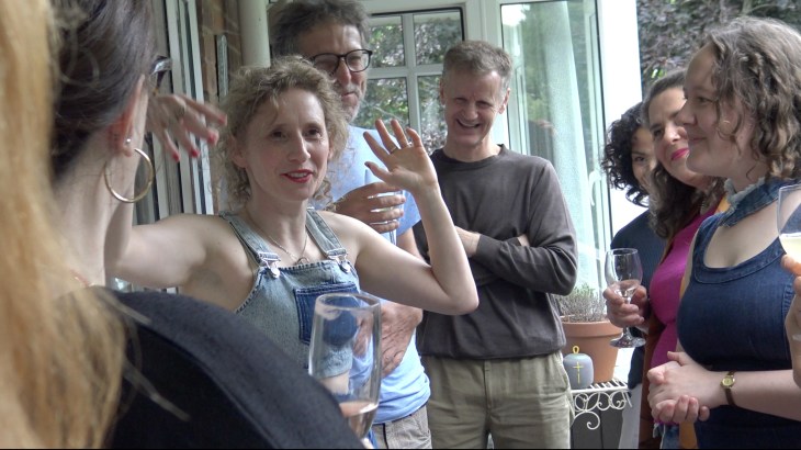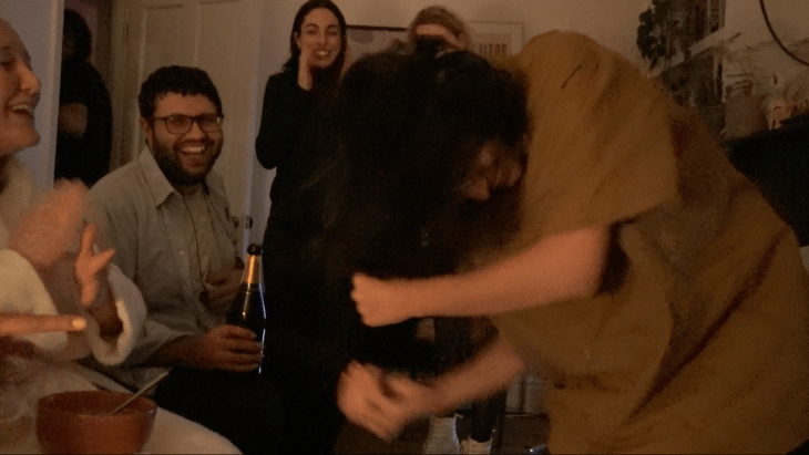 This practice developed into the performance We Move in Close Circles: a post-lockdown love-song to gathering and friendship, composed of food, toasts, argument, dancing, reality TV, singing, hysterical come-downs, and accountability circles. We Move in Close Circles intervenes on a culture of anxiety and control, in which many of us crave the company of others, while striving to protect ourselves from what such encounters might bring.